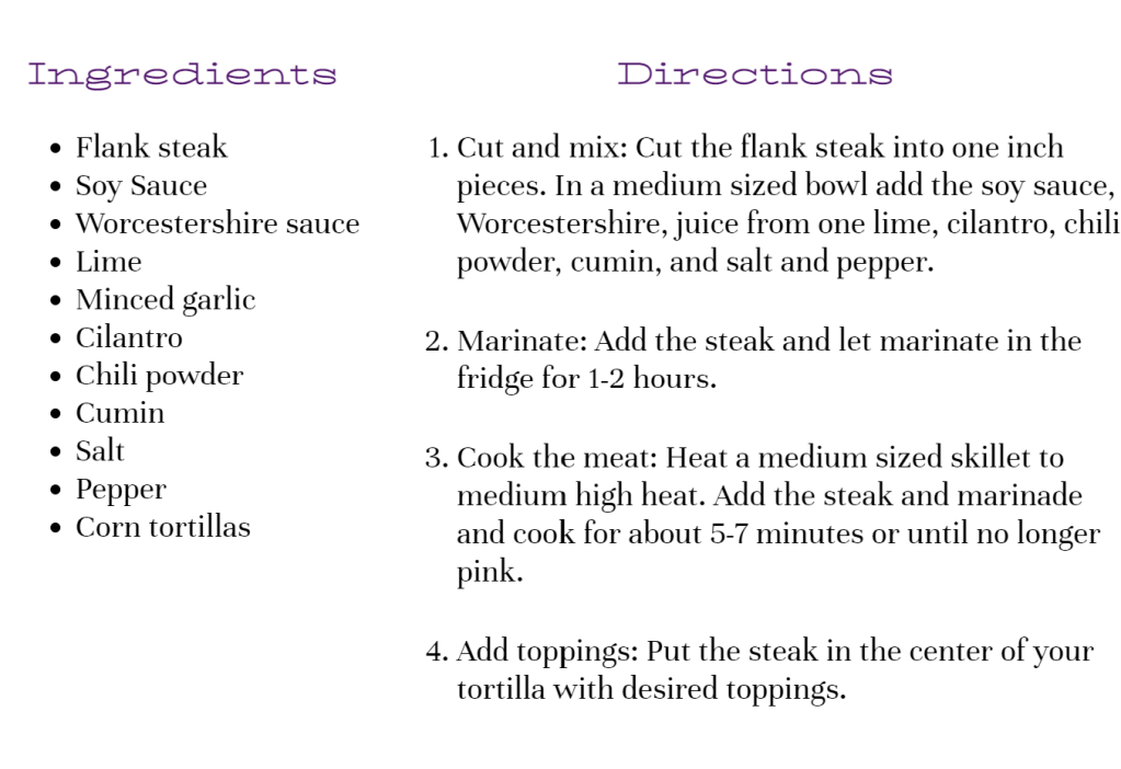 The marble used in the backdrop was reminiscent of a kitchen countertop and almost looked like a tortilla. Readability was the first concern when selecting the colors to be used. The bright orange ads a fresh feeling and the darker purple helps with readability.