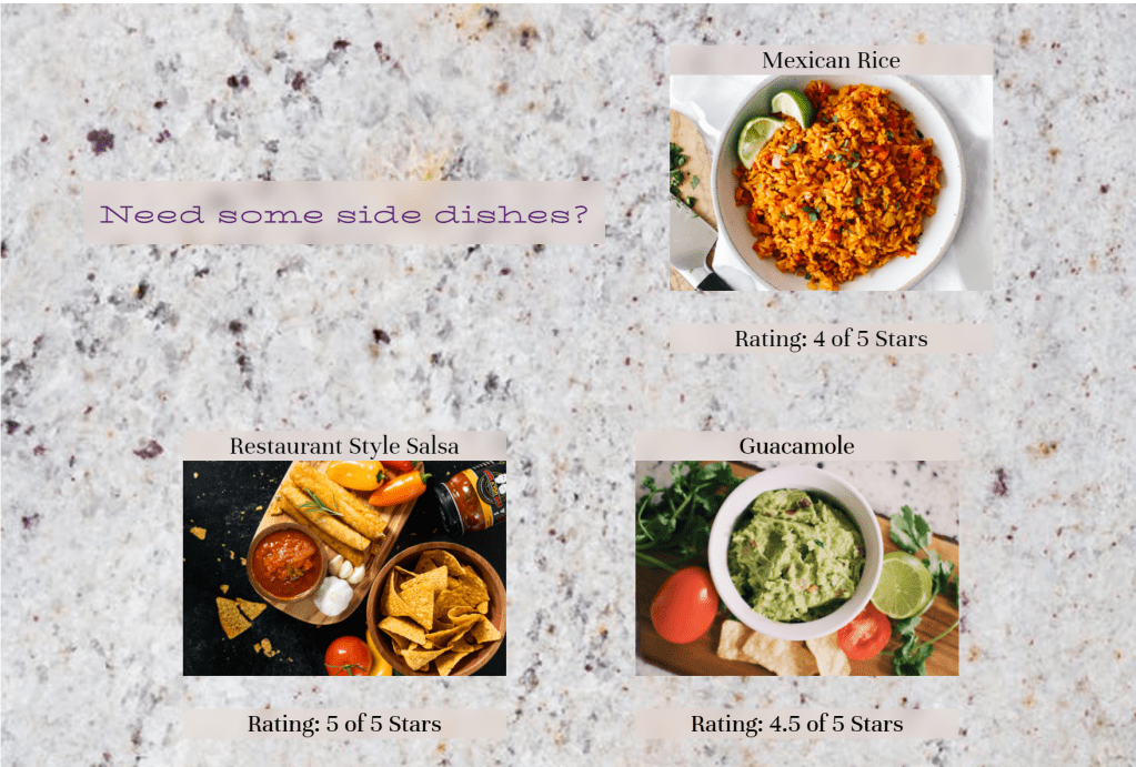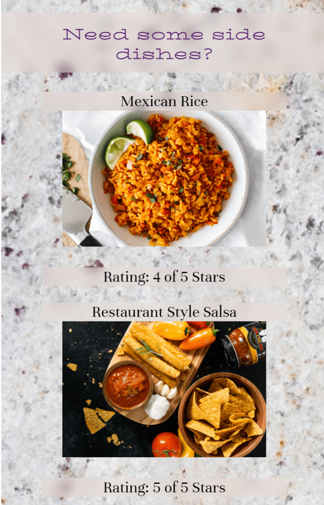 If looking in advance, our readers may want to pair their dish with some sides and not just have tacos. The website provides a link to items that would pair well with what they are making. Further down are links to options for different parts of the day in case they are planning meals for the rest of the week and not just the day.