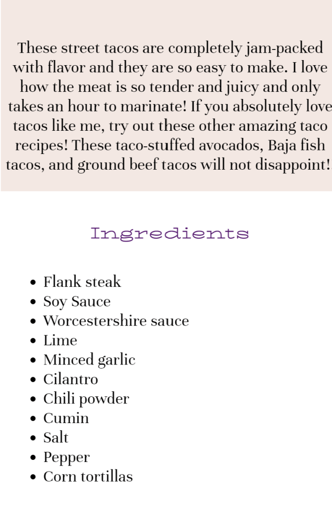 Mobile street tacos recipe page